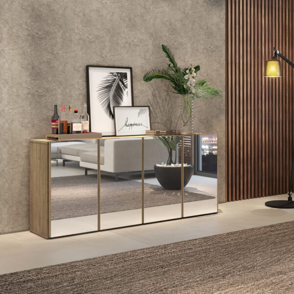 Modern 4 Door Side Cabinet with Mirrors.