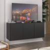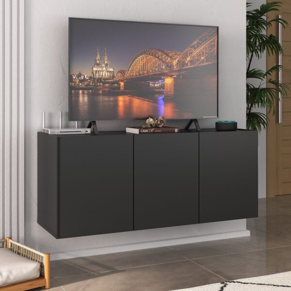 Suspended 3-Door Cabinet, designed not only for storage but also to accommodate small TVs, seamlessly blending style and functionality. Elevate your living space with this modern marvel, featuring a suspended design that adds a touch of sophistication to any room.